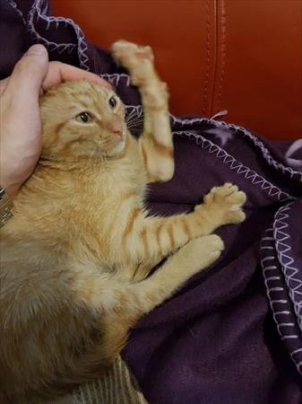 Thor isi ducea veacul alaturi de mamica lui intr-un depozit unde nu mai putea sta asa ca salbatic fiind a fost nevoie sa fie capturat cu ajutorul unei capcane. In mod evident, nu a fost ranit in aceasta actiune insa acum isi cauta un stapan iubitor in bratele caruia sa toarca neincetat.