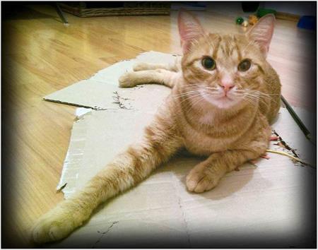 Apoi, incet-incet, cu rabdare, afectiune si cateva recompense, a capatat incredere in noi. Eu l-am gasit pe strada cu o labuta fracturata. A fost operat si s-a refacut complet. Acum nu mai are probleme. Doar ca, de la o viroza mai veche, ii curge din cand in cand un ochisor, ca si cum ar plange.