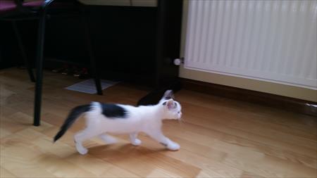 Donez motan 3 luni Figaro alb cu negru jucaus face la nisip crescut in casa