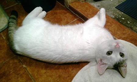 Laptic e un motanel tanar, jucaus, dulce si extrem de afectuos si lipicios si cu blanita foarte, foarte pufoasa, salvat de pe strada de un om bun. Trebuie sa-i gasim o familie a lui, dat fiind ca salvatoarea lui are déjà pisicutele ei.