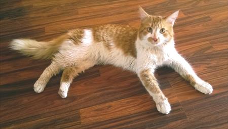 Varsta estimata: 1 an. Roscovanul este deparazitat, vaccinat, castrat. Analizele de sange i-au iesit bune, cu exceptia glucozei, care e un pic sub normal; desi e mancacios, probabil ca nu se va ingrasa vreodata din acest motiv.