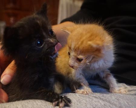 Suntem doi pui de pisica salva?i din ghearele necru?atoare a strazii unde eram în mare pericol..